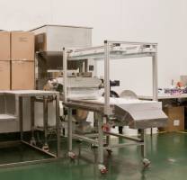 Well-lit area which utilizes a conveyor system .