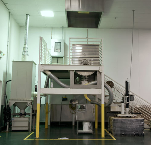 This machine is used to uniformly coat powdered ingredients.